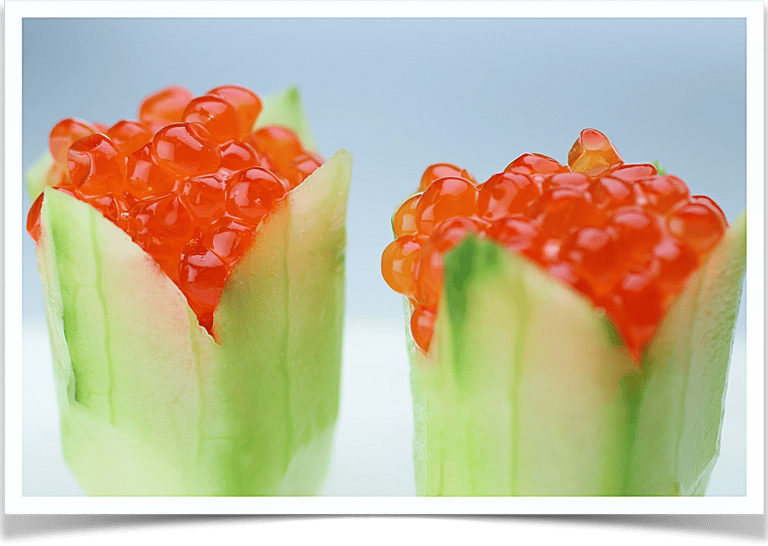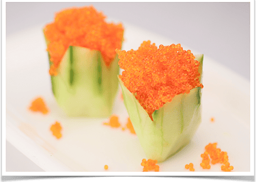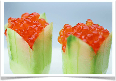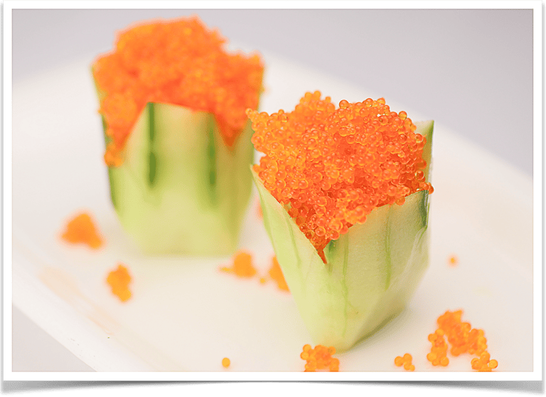 Tobiko's Pleasure is in Both the Umami Rich Taste and the Crisp Texture, Served in Cucumber Cups